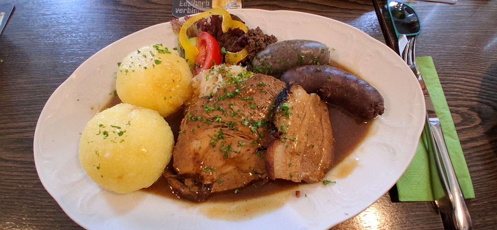 PS: Tanzschuhe? – Zu früh! Der „Diebrische Fasching“ findet erst in drei Wochen im Gasthof Synderhauf statt, in dem wir schließlich mit dem auf der Wanderung geholten guten Appetit die großen Portionen vorzüglicher Speisen gerade so bewältigen konnten.