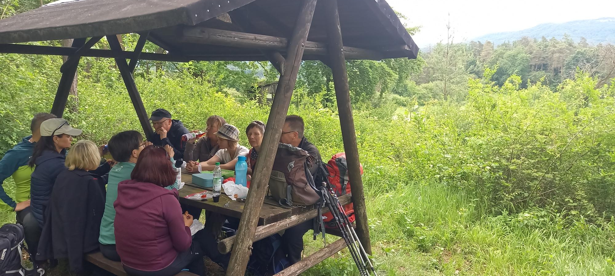 Die Abschlusstour am vierten Tag führte uns auf den Hohen Meißner (754 m), den „Hausberg der Frau Holle“. Nach Tagen voller Sonnenschein erwischte uns auf den letzten Metern ein kräftiges Sommergewitter – was der guten Stimmung jedoch keinen Abbruch tat. Bei Kaffee und Kuchen im Meißnerhaus ließen wir die Tour gemütlich ausklingen, ehe es im strömenden Regen zurück nach Hof ging.