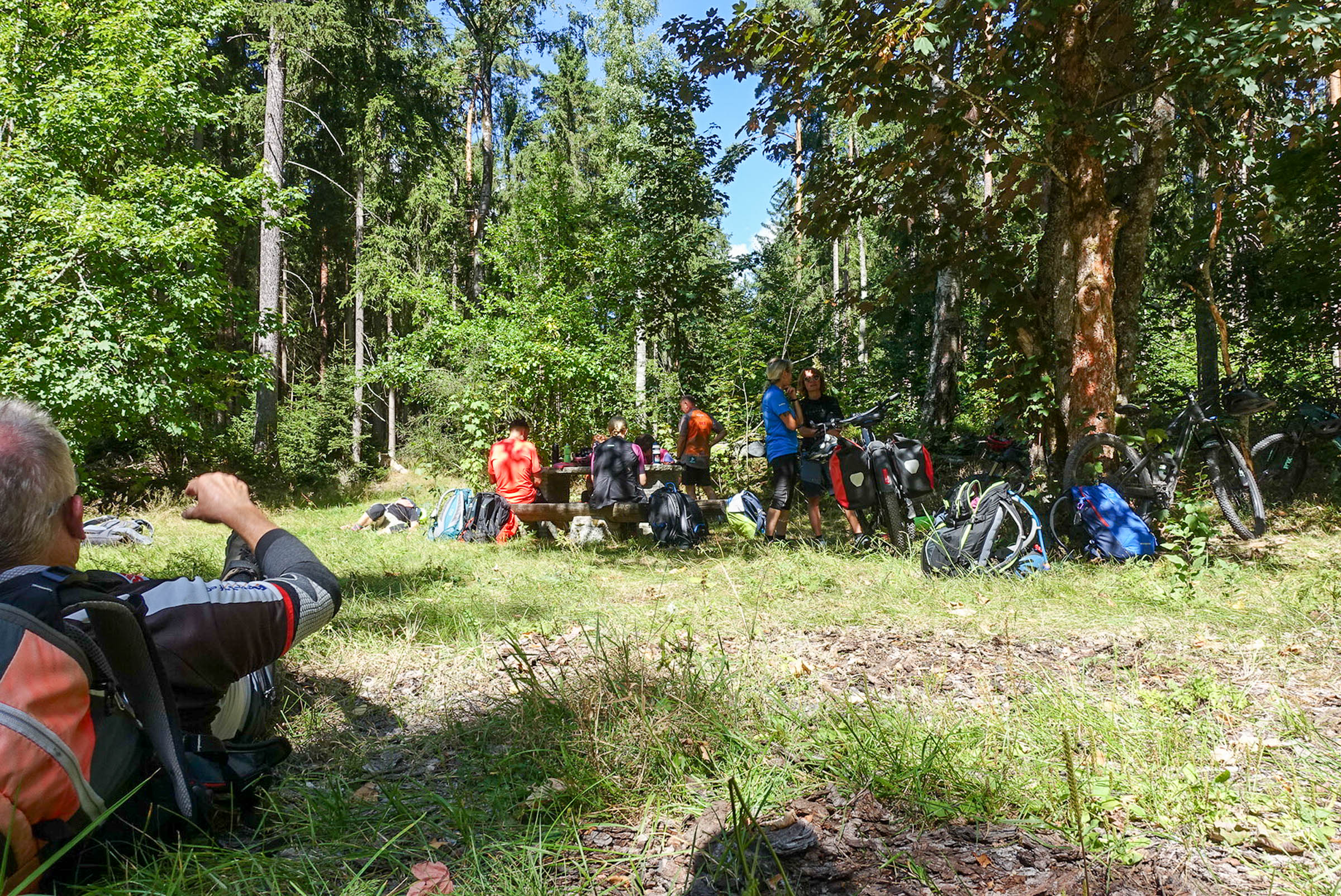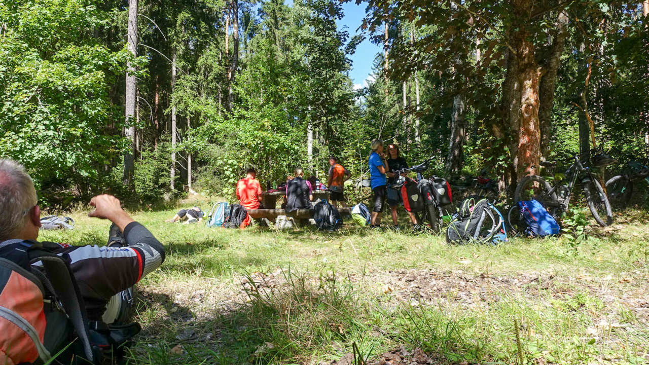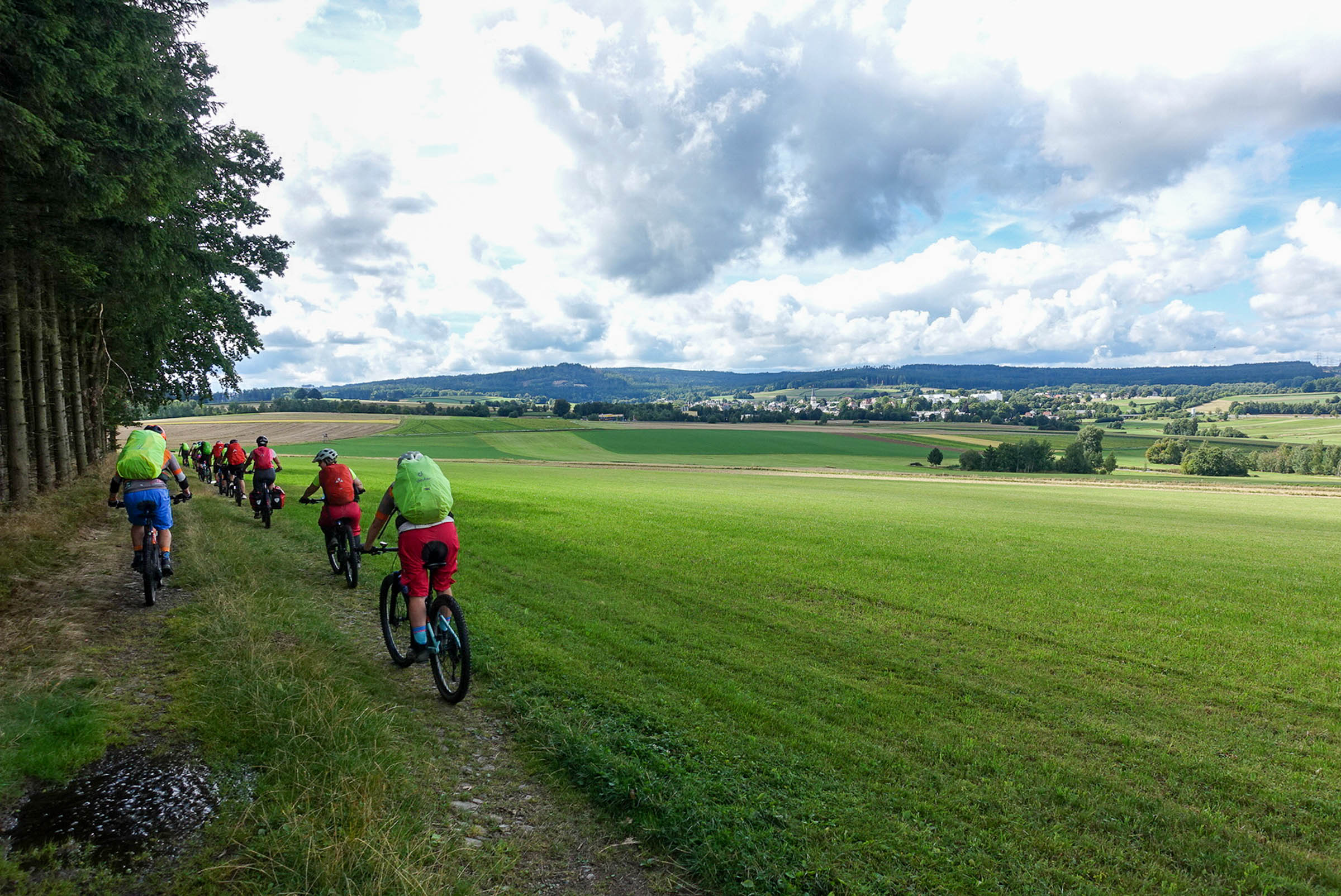 Am Sonntag hieß es erstmal: Hütte putzen – schließlich wollen wir wieder willkommen sein. Danach machten wir uns über den Thusfall bei Röslau und das Rondell bei Kaiserhammer auf den Heimweg. Eine letzte Brotzeit durfte natürlich nicht fehlen. An der Sandgrube am Pfarrhaus gab’s noch eine kleine Technikeinheit durch Gerhard – sicheres Fahren auf schönen schlechten Wegen – ehe es über Wurlitz und den Perlenradweg zurück zum Untreusee ging.