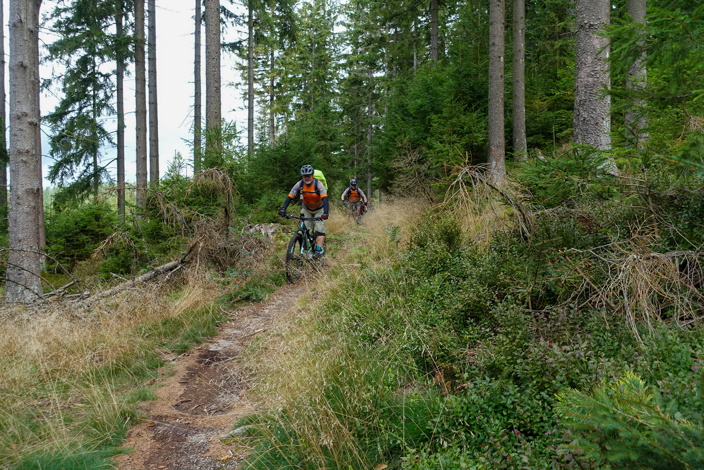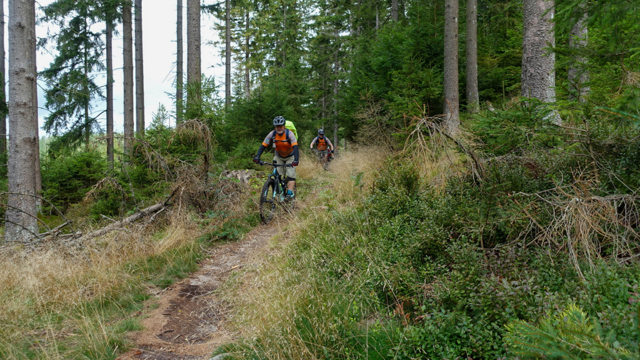 Samstagmorgen starteten wir mit einem Frühstück, das den Namen „ausgiebig“ wirklich verdient hatte, nochmals ein herzliches Dankeschön an Ivonne und Petra. Gut gestärkt ging es über den Rudolfsattel, am Schneeberg entlang und über Plattensteig und Jägersteig bis zum Neuweiher – natürlich mit Brotzeitpause. Danach erfolgte der lange Anstieg zur Kösseine, wo wir uns eine Einkehr gönnten, bevor es über steinige Trails ordentlich zur Sache ging: Haberstein, Luisenburg und Schönbrunn ließen grüßen. Zurück führte die Route über Forstwege und Trails nach Vordorf. Abends belohnten wir uns im Birkenhof in Schönlind – Essen, Trinken, Lachen, alles inklusive.