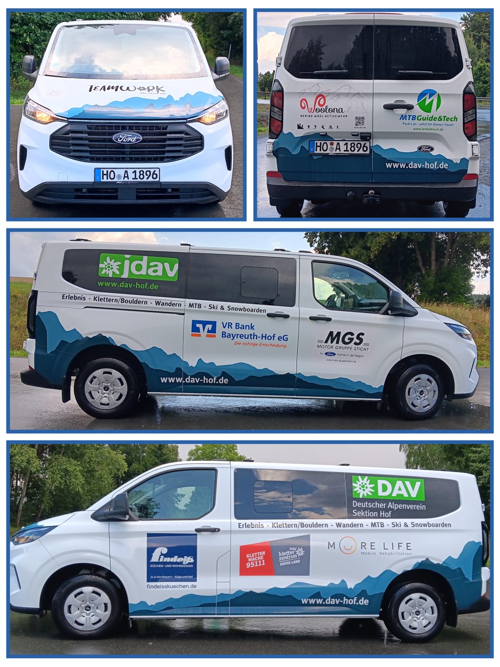 Mit dem Vereinsbus sind die Mitglieder der DAV Sektion Hof klimafreundlich unterwegs und leisten somit einen wertvollen Beitrag zum Klima- und Umweltschutz! Der „neue“ Vereinsbus wurde sehr ansprechend gestaltet und ist somit ein echter Hingucker geworden!