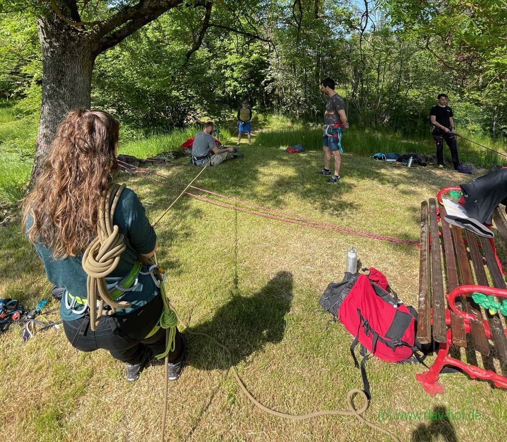 Aktuell, KletternDie Sonne scheint, die Temperaturen steigen – der Sommer rückt näher. Um gut vorbereitet in die kommende Hochtourensaison zu starten trafen sich sieben DAVler bei bestem Wetter im Theresienstein-Park, um ihr Wissen um die Spaltenbergung aufzufrischen.