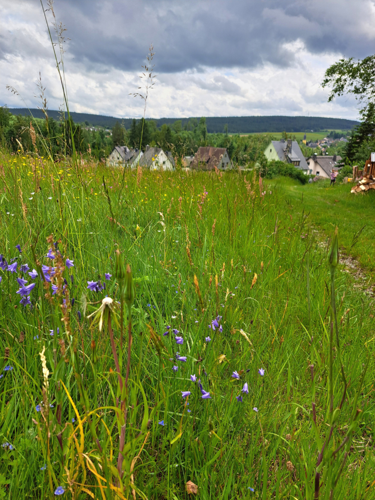 Gerade noch jahreszeitlich passend führte der Rundkurs am Freitag, den 27. Juni durch die geförderten wirtschaftlichen Blumenwiesenareale nördlich von Geroldsgrün.