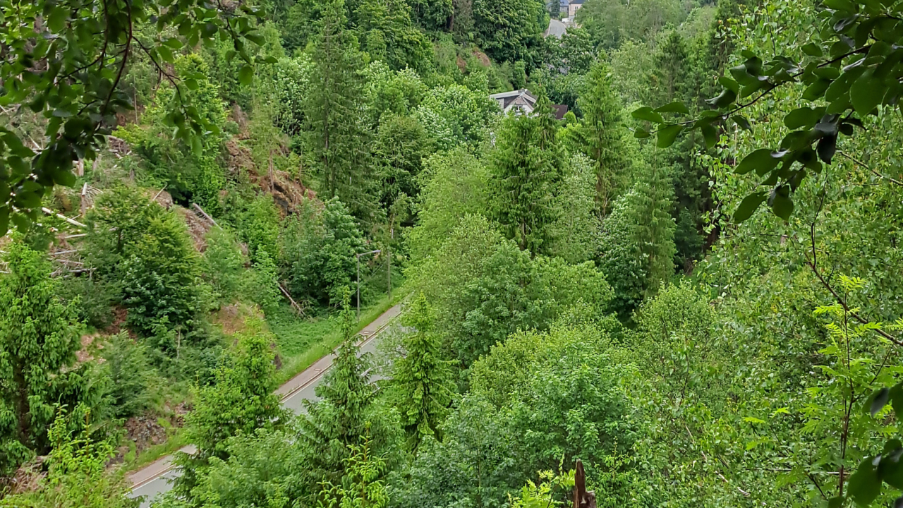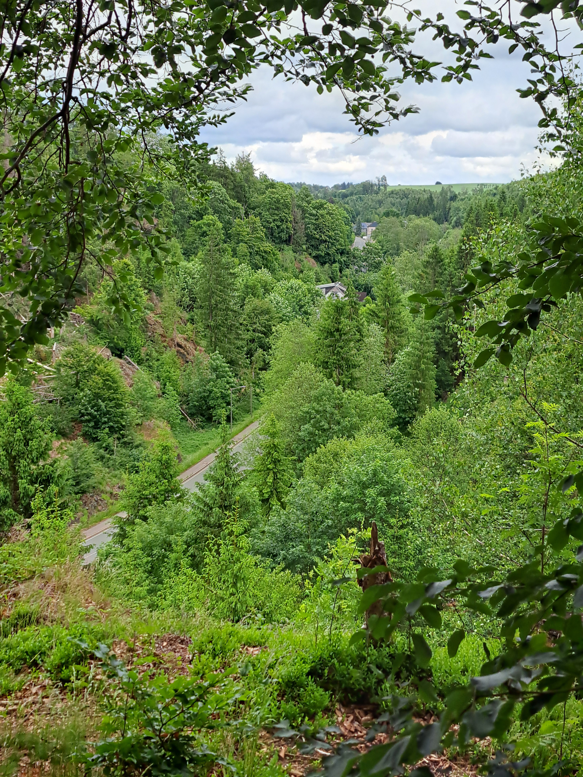 Auf der Höhe zurück gab es noch einen kurzen Austrittspfad zu einem schönen Blick in das Waldtal der Ölsnitz bis Geroldsgrün.