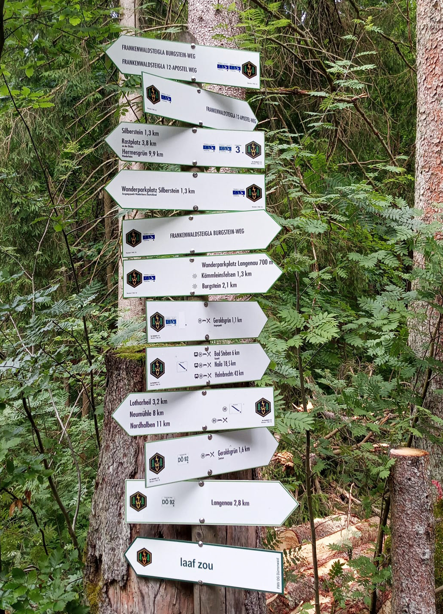 Ein seniorenheftiger Aufstieg war nun ein Teilstück des Apostelweges zurück nach Geroldsgrün. Silberstein am Berg gelegen ist bekannt durch den Geroldsgrüner Schieferabbau von Faber Castell. Putzig, dort am Weg gelegen, eine kleine Trinktankstelle (full bar) für durstige Apostelwegwanderer!