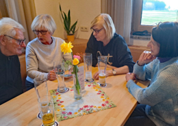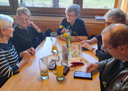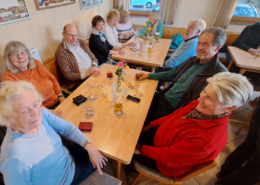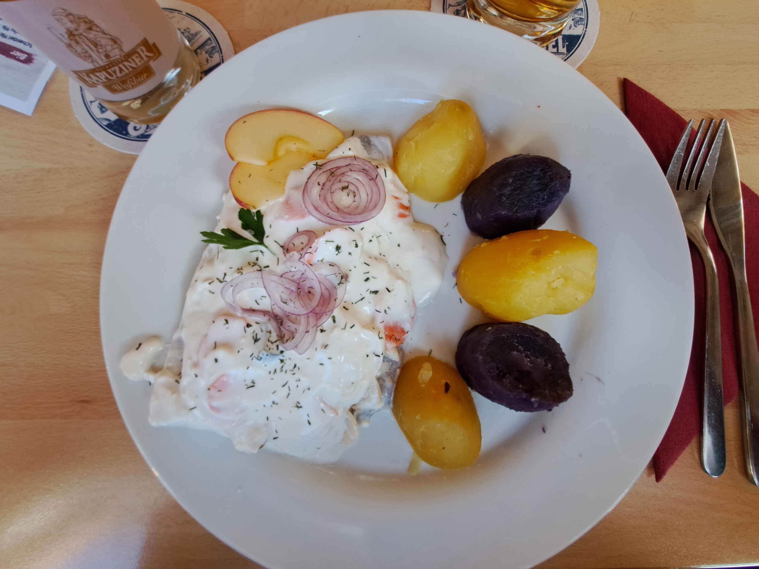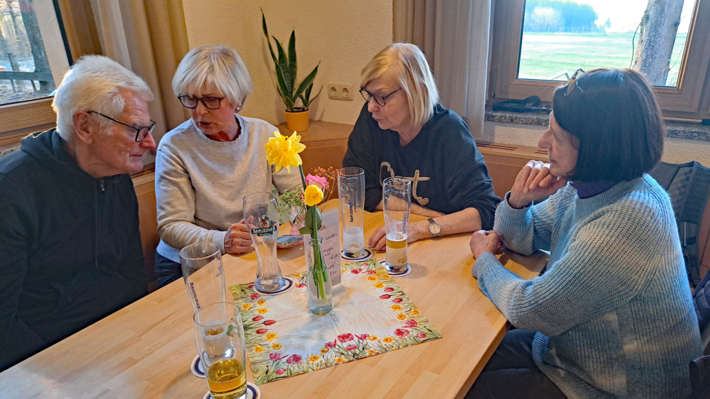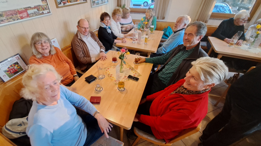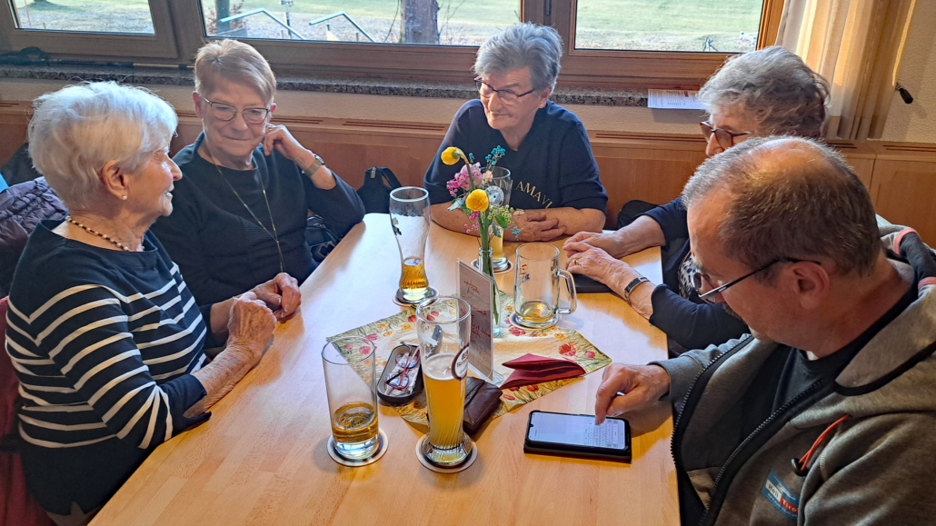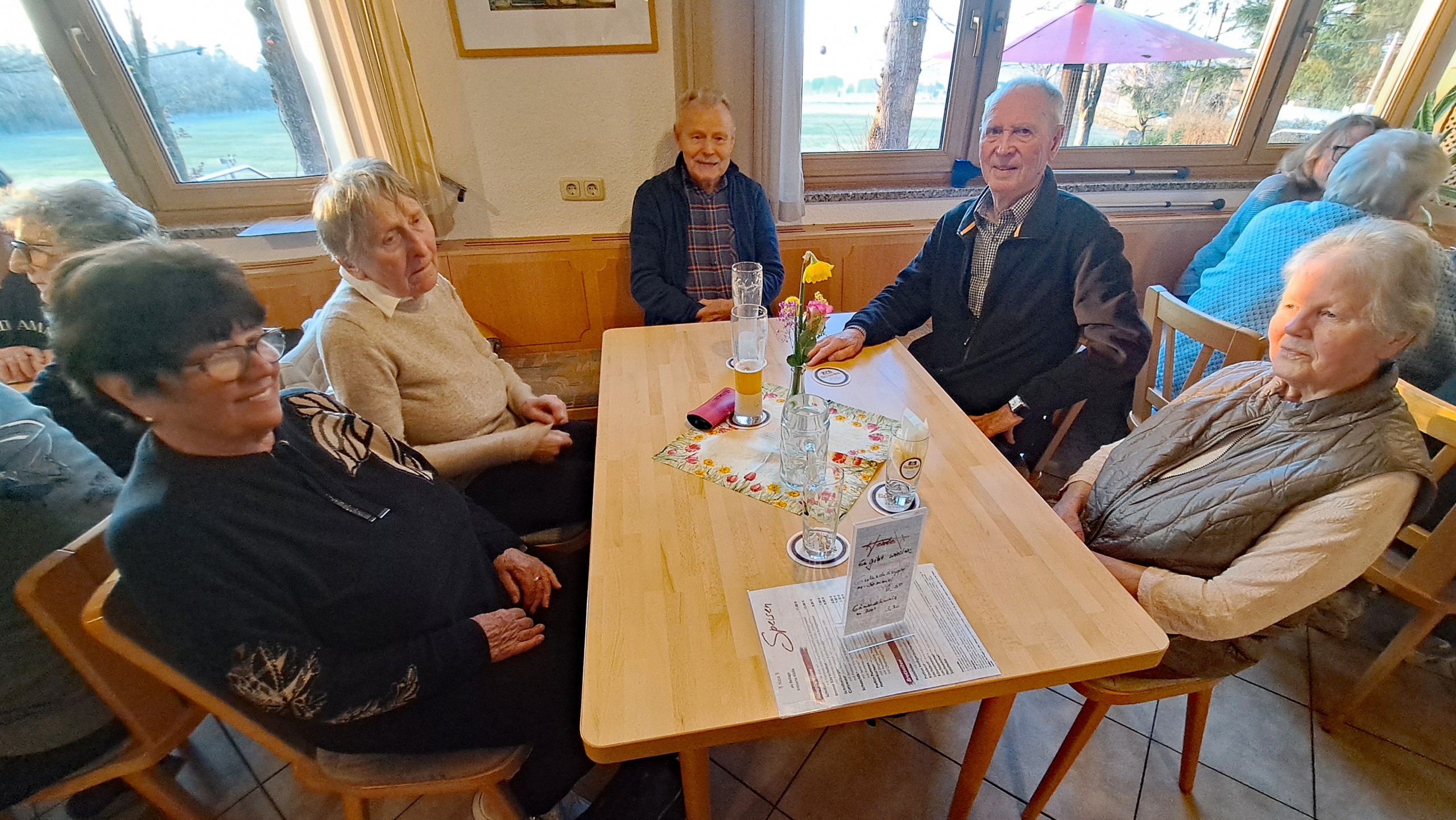 Ein Großteil der Senioren parkte im Bereich Birkenbühl am Förmitzspeicher und strebte dann in der Wintersonne über Obstbaumwiesen und Rinderweiden hinauf in das Dorf Hallerstein und dann weiter zum Turnerheim „Heisla“. Wie in den letzten Jahren schon hatte der Wirt des Turnerheimes ein Heringsessen vorbereitet, das wieder einmal allen geschmeckt hat. Auch die schwarzen (!) einheimischen Kartoffeln kamen dabei wieder zum Einsatz. Zurück hinab zum Förmitzspeicher hat die Spaziergänger dann noch die untergehende Wintersonne begleitet.