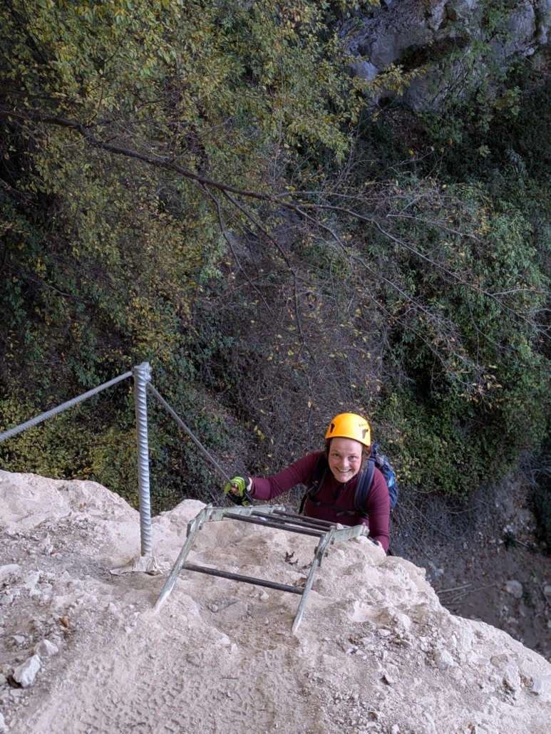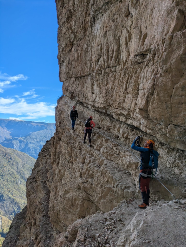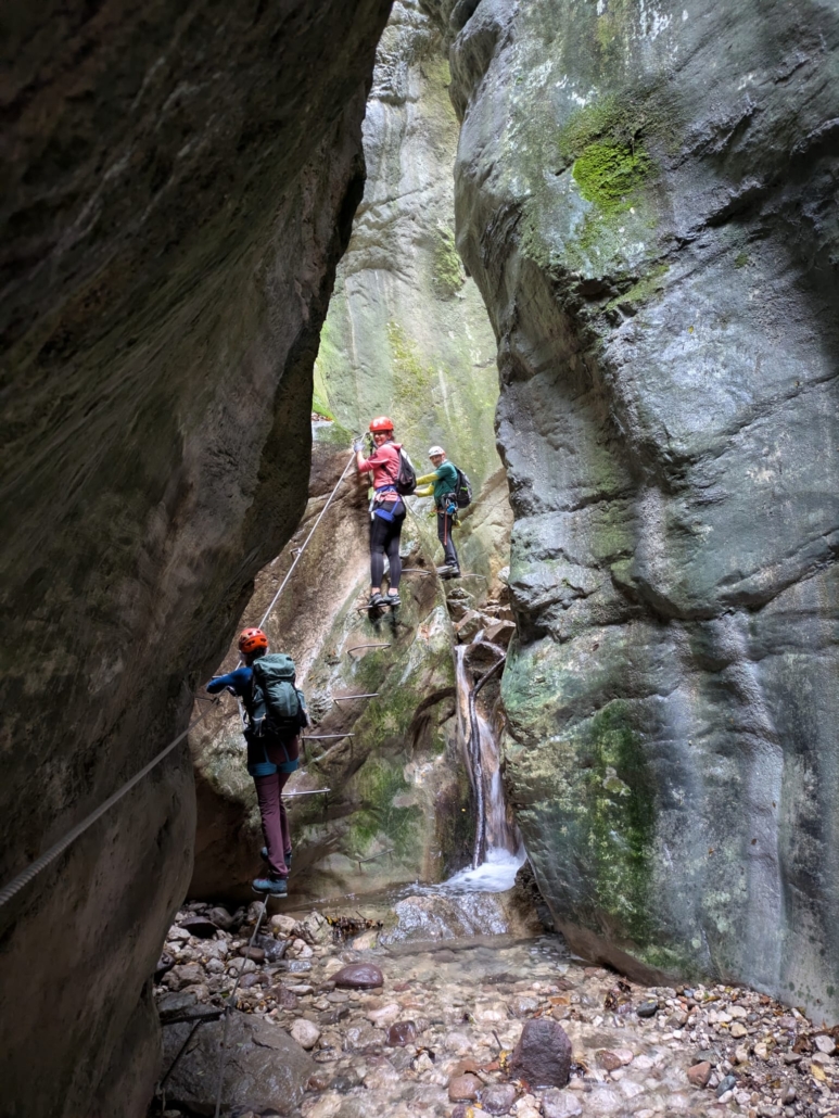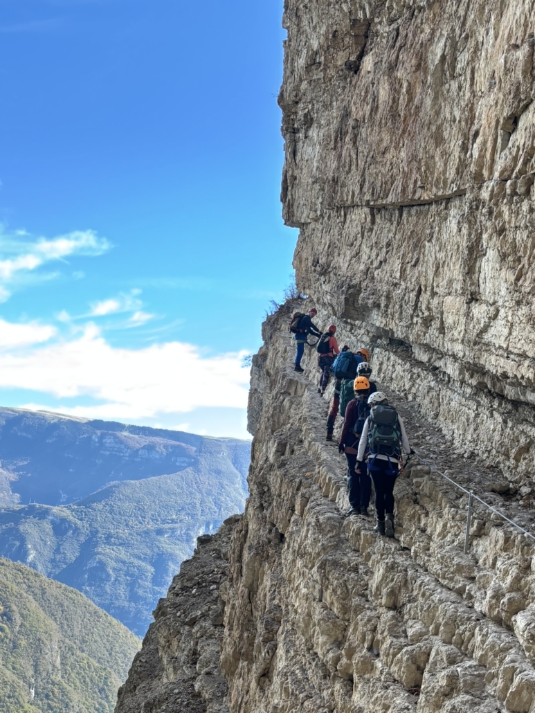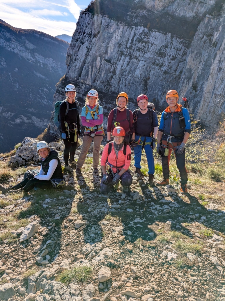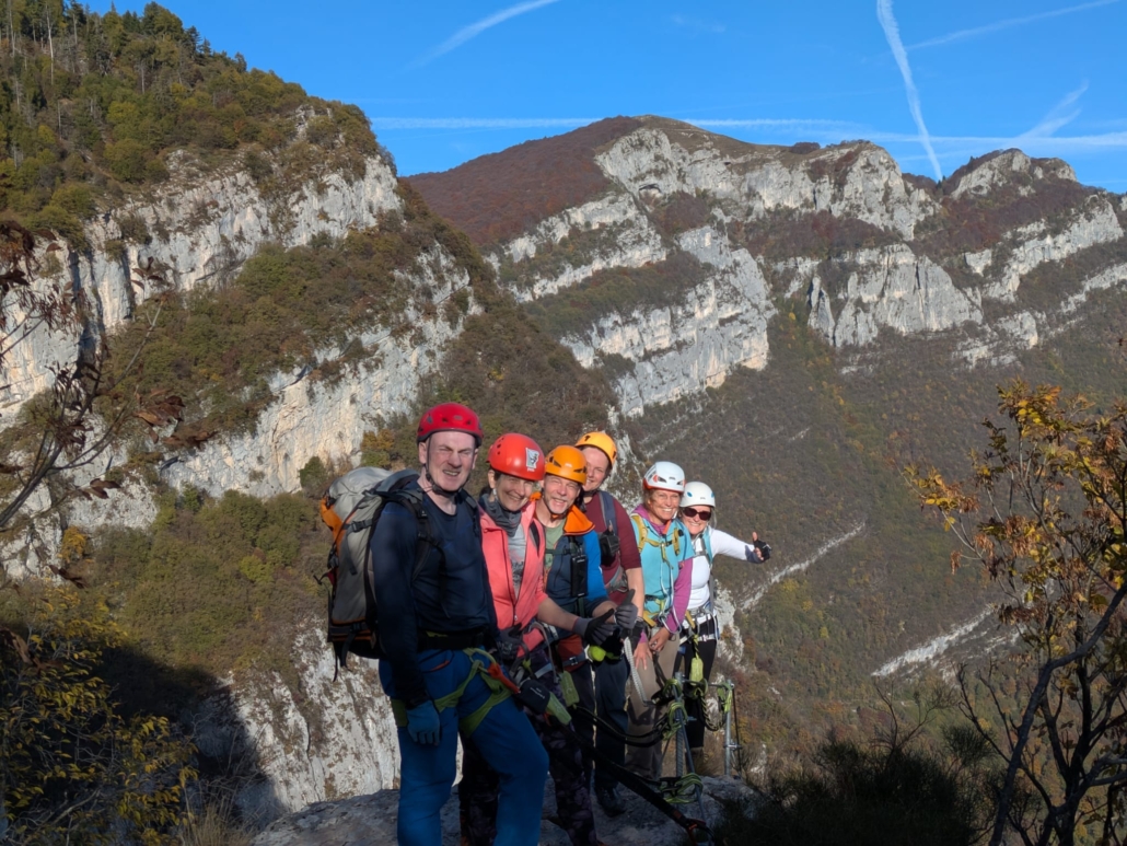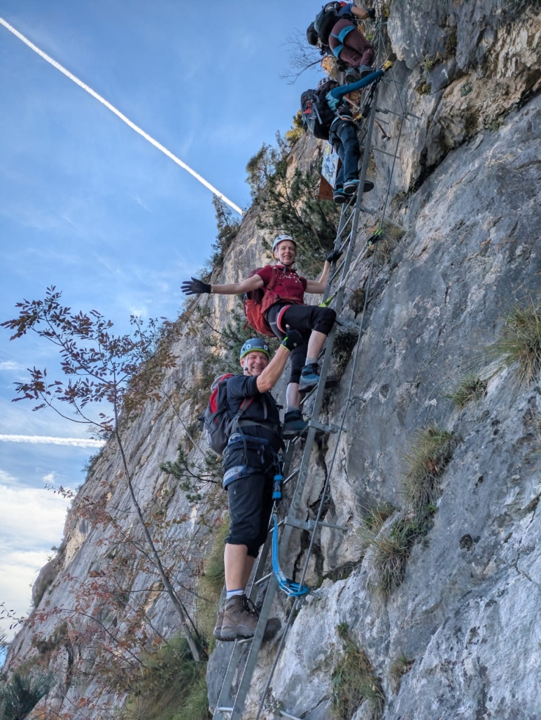 Als TWIN Tour waren die Klettersteige ausgeschrieben. Damit ist gemeint, dass jeden Tag zwei unterschiedliche Touren gemacht werden (meist eine eher einfachere und eine eher schwierigere) für die man sich entscheiden konnte. So kam ein abwechslungsreiches Programm an Via Ferrate zusammen. Insgesamt konnte die Gruppe 11 abwechslungsreiche Touren mit Klettersteigen begehen. Diese lagen in den Schwierigkeitsstufen von A/B bis D. Da gab es am Abend im Ristorante eine Menge zu erzählen und auszutauschen.