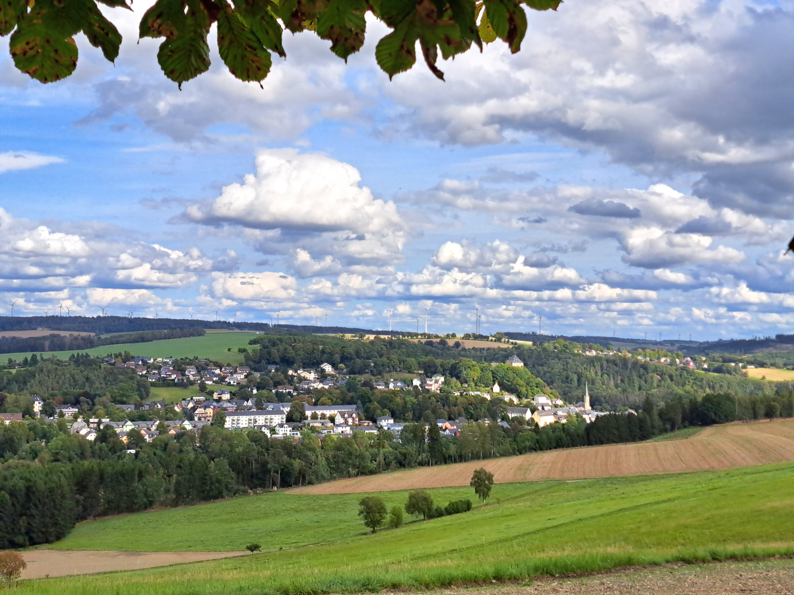 Ein schöner Weg mit tollem Ausblick aus der Höhe nach Hirschberg und seinem über der Stadt thronendem Schloss.