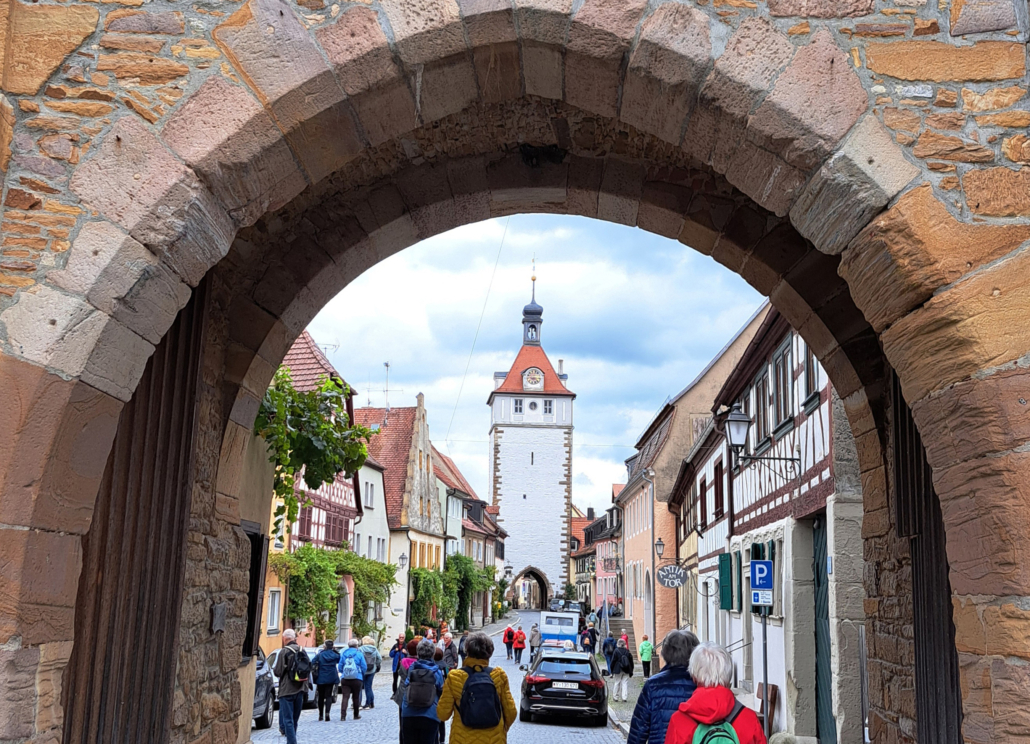 Nachmittags auf der Rückfahrt war ein weiteres Ziel das alte romantische Städtchen Prichsenstadt mit seinen noch intakten Stadttoren. Jeder konnte in der Geschichte des Städtchens selbst herumstreichen. Treffpunkt war zum Schluss der wunderbare Innenhof des alten Hotels Gasthof Storch. Viele hatten dort noch genug Platz für einen Schoppen Frankenwein, bevor es auf die Rückfahrt wieder nach Hof ging.