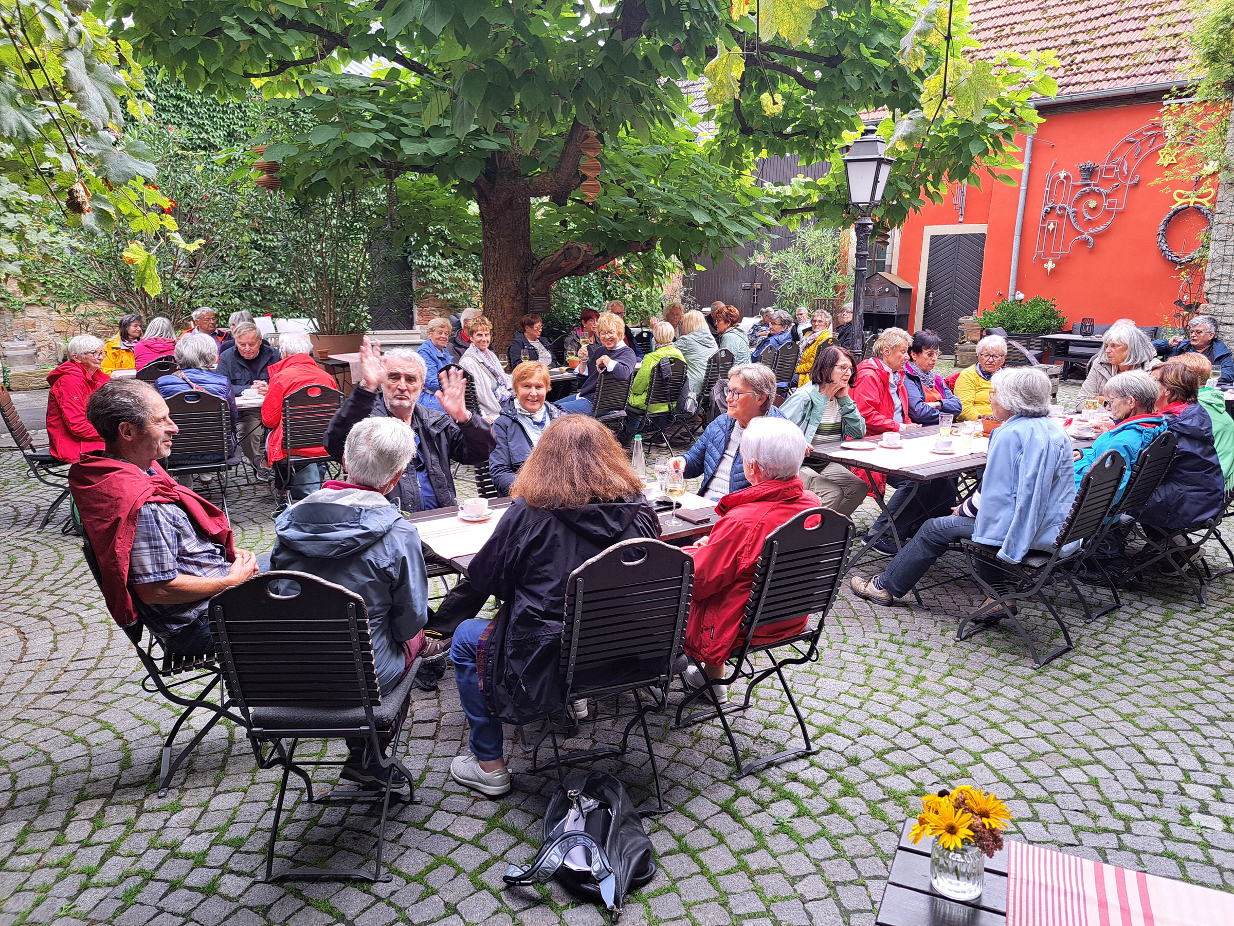 Schon am frühen Vormittag startete ein voller Bus mit Wanderern und Geniessern des DAV Hof nach Sulzfeld am Main – Helga Pangerl hatte gerufen.